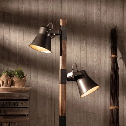 Brilliant Standleuchte Plow 2-flammig Schwarz Stahl Und Holz