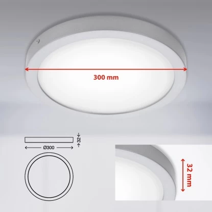 Die moderne und energieeffiziente LED-Aufbauleuchte ist individuell im Innenbereich einsetzbar. Der runde Spot mit einem Durchmesser von 300 mm in der Farbe Chrom-Matt bietet Ihnen die Möglichkeit, Ihren Wohnraum in einem neutralweißen (4.000 K) Licht optimal auszuleuchten.