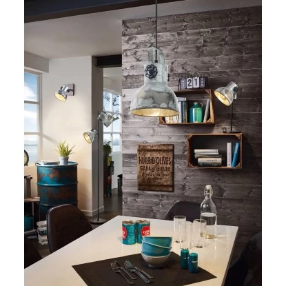 Die Tischleuchte Barnstaple besteht aus einem runden Metall-Fuß mit einer braunen Holzdekor-Optik und einem umliegenden Metallband in Schwarz. Der bewegliche Leuchtenkopf im verzinkten Used-Look und die seitlich daran angebrachten Feststellschrauben in Schwarz runden das rustikale Design der Leuchte ab. Ebenso ist ein bequemes Ein- und Ausschalten über einen Schalter am Kabel möglich. Die Tischlampe fügt sich nahtlos in den Industrial-Trend ein und ist dank des schwenkbaren Leuchtenkopfes optimal für jeden Raum geeignet – egal ob im Schlafzimmer auf dem Nachttisch, Wohnzimmer, Esszimmer oder im Flur. Das abgebildete Filament-Leuchtmittel ist nicht im Lieferumfang enthalten. Geeignet ist die Leuchte für jedes Leuchtmittel mit E27-Sockel.