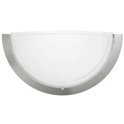 Die Wandleuchte Planet 1 besteht aus satiniertem Glas in halbrunder Form mit einem nickelfarbenen Korpus. Sie können die Leuchte mit einer Allgebrauchsglühlampe oder alternativ mit Energiesparleuchtmittel betreiben.