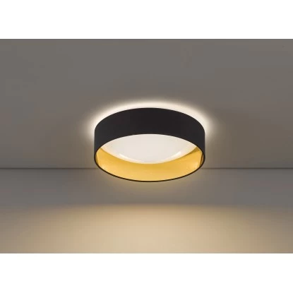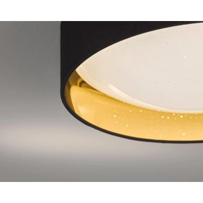 Im Zentrum des Geschehens wertet das besondere Formendesign Ihren Wohnraum optisch auf. Diese runde Fischer & Honsel HV-LED-Deckenleuchte Sete sorgt für blendfreies, harmonisches Licht bei hoher Reichweite. Die einladende Lichtatmosphäre eignet sich hervorragend für den Eingangsbereich, Flure, aber auch im Wohnbereich macht dieser Artikel eine gute Figur. Das Acrylglas Weiß mit einem Sternendekor funkelt wie das Firmament und zaubert einen Hauch von Luxus in Ihr Zuhause. Der Stoffschirm in Schwarz/innen goldfarben rundet dieses Lichterlebnis noch perfekt ab.