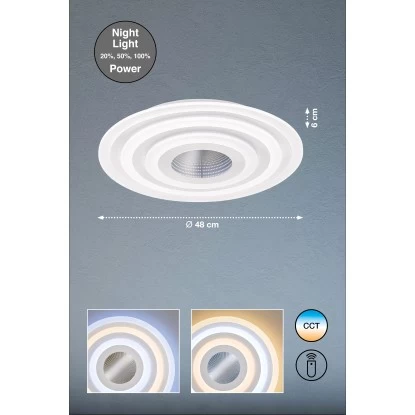 Die Leuchte ist mit einer praktischen Night Light Funktion ausgestattet, die in den Stufen 100%, 50% und 20% wählbar ist. Kommen Sie langsam zur Ruhe. Das Licht kann über die Fernbedienung in die gewünschte Stufe geschaltet werden.