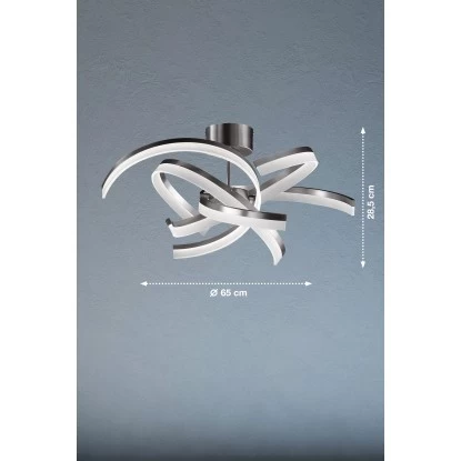 Durch das satinierte Acrylglas und die nickelfarben matte Oberfläche ist dieser Artikel eine puristische Schönheit und gibt ihrem Wohnraum ein besonderes Flair. Mit Durchmesser von 65 cm sowie einer Deckenausladung von 28,5 cm lässt sich die Leuchte sehr flexibel positionieren.