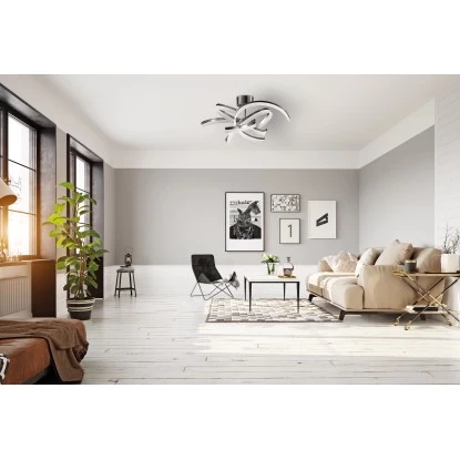 Die modernen LEDs (4 x 8 W / 3400 Lumen / 2700 bis 6500 K individuell einstellbar) haben eine hohe Lichtqualität und zeichnen sich durch Energieeffizienz aus. Im Vergleich zu herkömmlichen Leuchtmitteln lässt sich hier Energie sparen. Zusätzlich haben LED-Lichtquellen eine lange Lebensdauer, produzieren weniger Wärme und schonen die Umwelt. Diese Leuchte enthält eingebaute LED-Lampen – diese können in der Leuchte nicht ausgetauscht werden.