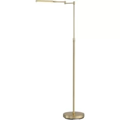 Der Fuß der Leuchte und auch das Gestell sind aus Metall in messingfarben matt gefertigt. Dazu bildet die satinierte Acrylblende einen schönen Kontrast. Das zeitlose Design dieser Stehleuchte können Sie mit nahezu jeder Einrichtung kombinieren. Darüber hinaus verzichtet die Leuchte auf alle überflüssigen Details. Wenn der Tag zuneige geht und allmählich Ruhe einkehrt, dann können Sie es sich mit dieser Stehlampe so richtig gemütlich machen in Ihrem Zuhause. Sie bringt sprichwörtlich jeden Raum zum Strahlen.