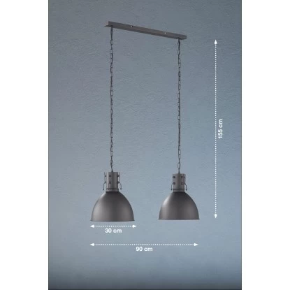 Mit dieser zweiflammigen Pendelleuchte London von Fischer & Honsel zieht eine moderne Lichtquelle in Ihre Räume ein, die zeitgleich zu einem dekorativen Einrichtungsdetail wird. In ihrer zeitlosen Form kann sie in jeden modernen Wohnraum integriert werden. Betrachten Sie auch die extravaganten Details dieser Leuchte, die sich erst bei näherem Hinsehen zeigen. Die Aufhängung und die Lampenschirme aus Metall präsentieren sich in einem matten Sandschwarz. Dazu bildet das Innere der Schirme in Silberfarben einen auffallenden Kontrast.