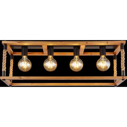 Diese schöne Deckenleuchte beeindruckt durch ihr tolles Design. In einem 80×25 cm großen Holzgerüst mit Hanfseil Verzierungen befinden sich 4 E27 Fassungen welche an der Decke mit einer schwarz matten Metallstange befestigt sind. Die E27 Fassungen ermöglichen Ihnen die freie Auswahl, bis zu einer maximalen Leistung von 60 Watt, über Ihr Leuchtmittel.
