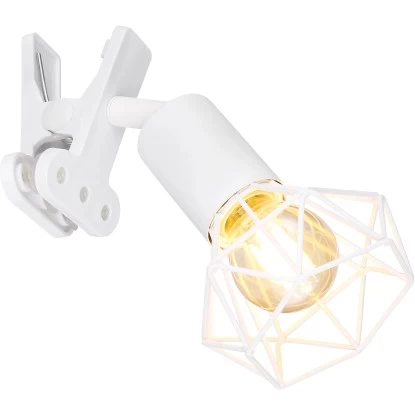 Dieser tolle Klemmstrahler begeistert durch Funktionalität. An einer weißen Klemme befindet sich eine E14 Fassung mit einem formschönen Schirm aus weißem Metallgeflecht. Die E14 Fassung ermöglicht Ihnen bis zu einer maximalen Leistung von 40 Watt, selbst über Lichtfarbe und Helligkeit zu bestimmen. Aufgrund von Langlebigkeit und Stromersparnis empfehlen wir LED Leuchtmittel.