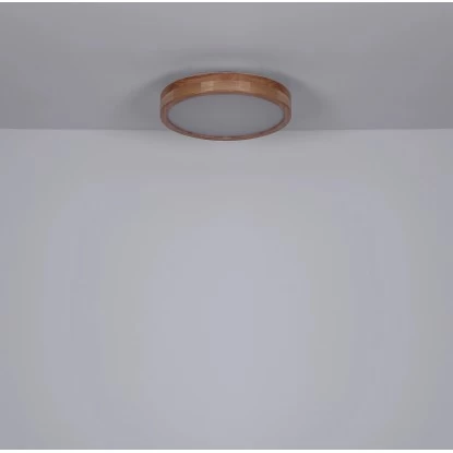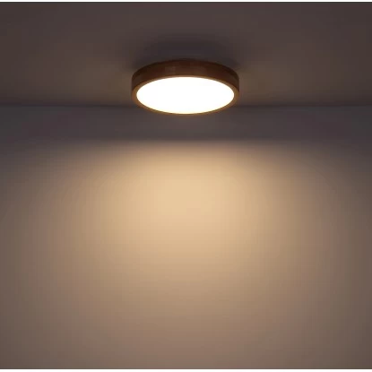 Diese weiße Deckenleuchte (Ø 40 cm), mit einem Rahmen in Holzoptik, ist ein Blickfang für Ihre vier Wände. Das Glas lässt Ihren Raum in bis zu 1350 Lumen starkem Licht erstrahlen. Je nach Stimmungslage lässt sich das Licht mittels Fernbedienung bequem von Warmweißen 3000 K bis zu Kaltweißen 6000 K dimmen. Diese Innenlampe überzeugt mit ihrer Vielseitigkeit mit dem Farbwechsler und die Möglichkeit, die Farben zu fixieren. Durch den neutralen Charme ist diese Lampe universell in verschiedenen Räumen Ihres Hauses einsetzbar.
