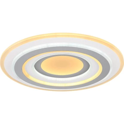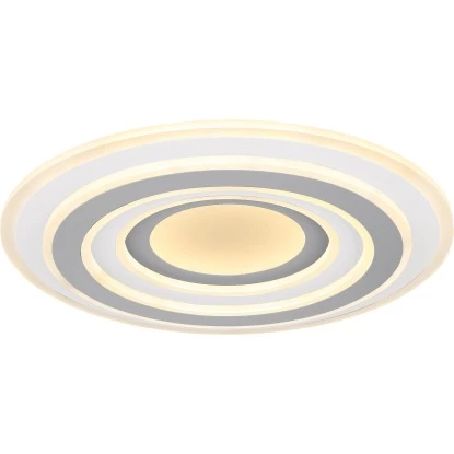 Die Deckenlampe Sabatino ist aus hochwertigen Acryl und Metall gefertigt und hat einen Durchmesser von 50 cm und eine Höhe von 7 cm. Ihr Design ist bewusst modern und elegant gehalten. Die Deckenleuchte ist mit 46 W fest verbauten LED-Leuchtmitteln ausgestattet und wird inklusive Fernbedienung geliefert. Ihre LED-Technologie ist Strom sparend und lässt ein sehr gleichmäßiges warmes Licht entstehen. Die Farbtemperatur lässt sich zudem zwischen warmweißen 3000 Kelvin bis hin zu kaltweißen 6000 Kelvin ganz einfach vom Sofa aus steuern. Darüber hinaus verfügt die Leuchte über Nachtlicht und Memory-Funktion.