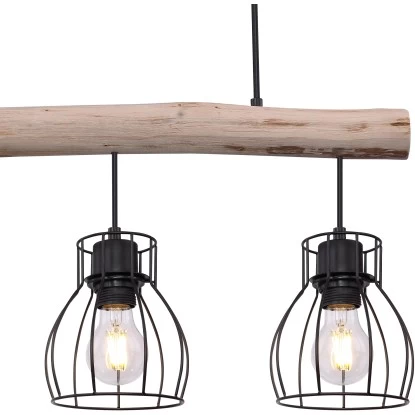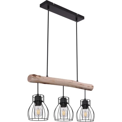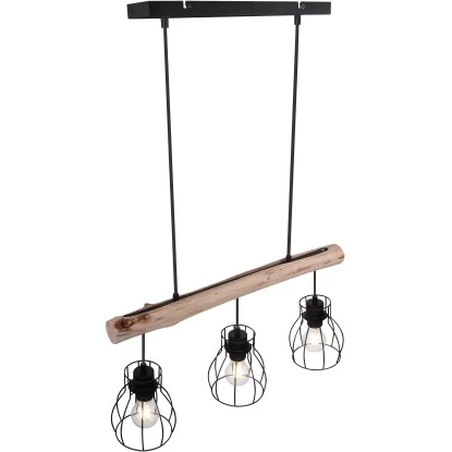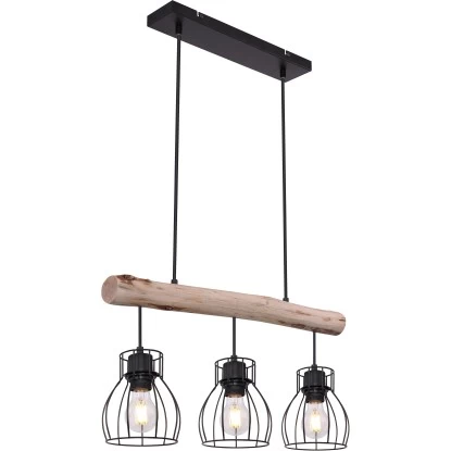 Die extravagante, stilvolle, Globo Hängeleuchte Mina aus schwarzem Metall, macht in nahezu jedem Raum eine gute Figur. An einen herabhängenden Holzbalken befinden sich drei E27-Fassungen, welche von einem gitterförmigen, runden Lampenschirm umgeben werden. Durch die freie Wahl des Leuchtmittels (3 x E27 / max. 40 W) können Sie selbst über Lichtstärke und Lichtfarbe dieser Innenlampe bestimmen. Durch andere Modelle dieser Serie können Sie das Bild Ihres Wohnraumes weiter verschönern.