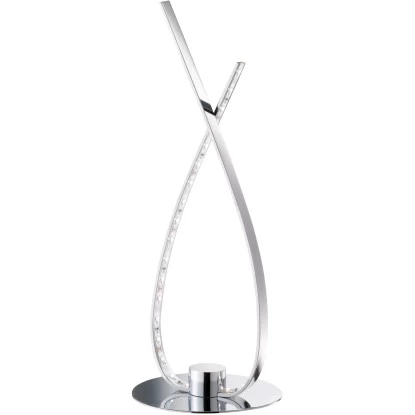 Die Leuchte bietet sich perfekt zur akzentvollen Beleuchtung des Wohnzimmers, des Flures oder auch des Schlafzimmers an. Die LED Tischleuchte hat eine Höhe von 31,5 cm und einen Durchmesser von 12 cm. Des Weiteren besitzt die Leuchte einen Schnurschalter, wodurch eine einfache Handhabung ermöglicht wird. Die Tischleuchte aus Metall in Chrom besticht durch zeitlose Eleganz und lässt sich wunderbar in vorhandene Farbkonzepte integrieren.