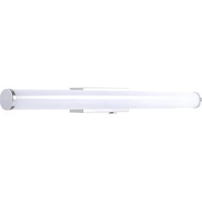 Mit der Schutzart IP44 ist die Wandleuchte gegen Spritzwasser geschützt und für diverse Innenräume geeignet. Zwei fest verbaute, umweltfreundliche LEDs mit einer Leistung von jeweils 7,6 W sorgen für ein angenehmes warmweißes Licht mit 3.000 K und einem Lichtstrom von 900 lm. Die Maße betragen 60 cm x 5,5 cm x 8,2 cm (H x B x T).