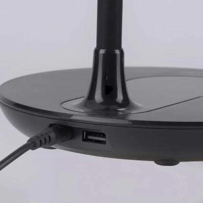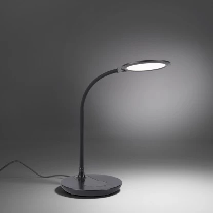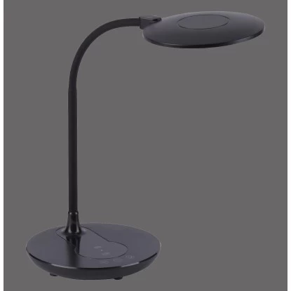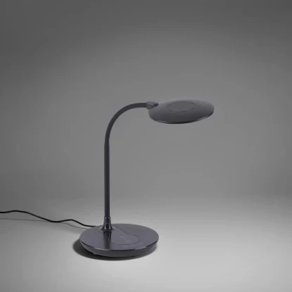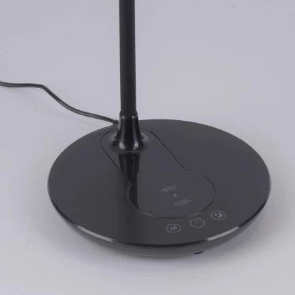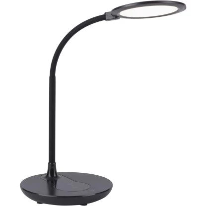 Die Leuchten Direkt LED-Tischleuchte Astrid Schwarz 3000-5500 K IP20 begeistert nicht nur durch ihr modernes Design, sondern auch durch ihre vielfachen Funktionen. Das besondere Highlight an dieser Leuchte ist die Möglichkeit, das Smartphone auf dem Lampenfuß – ganz ohne Kabelgewirr – laden zu können. Alternativ können Sie die USB-Schnittstelle nutzen. Die runde Schreibtischlampe kann über das Schaltboard auf dem Lampenfuß ganz einfach bedient werden. Durch das integrierte drei Stufen CCT-Lichtmanagement haben Sie die Möglichkeit, die Farbtemperatur von Warmweiß (3.000 Kelvin) über tageslichtweiß (4.000 Kelvin) bis hin zu Kaltweiß (5.000 Kelvin) variabel einzustellen. Des Weiteren ist die LED-Leuchte dimmbar, sodass die Lichtintensität per Touch individuell von Ihnen angepasst werden kann. Mithilfe der Nachtlichtfunktion schaffen Sie schnelle und einfache Orientierungshilfe in der Dunkelheit. Durch den Flexarm können Sie den Lichtkegel individuell Ihren Bedürfnissen anpassen. Dank der verwendeten LED-Technik zeichnet sich die Leuchte als äußerst energiesparend aus und überzeugt dabei mit einer geringen Wärmeentwicklung sowie hohen Lebensdauer. Die Tischlampe hat eine Höhe von 24 – 53,5 cm, eine Länge von 37 cm und eine Breite von 33 cm.
