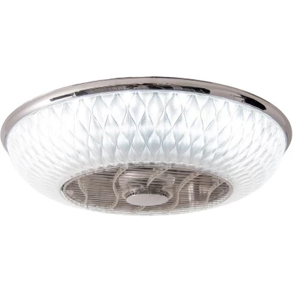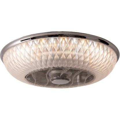 Diese luxuriöse Näve LED-Deckenlampe Viento mit Ventilator präsentiert sich in einem edlen Design und lässt Ihren Wohnbereich oder Ihr Geschäftslokal in einem besonders schönen, wechselbaren Licht erstrahlen. Von Warmweiß über Kaltweiß bis zur Nachtlichtfunktion – Sie können die Einstellungen einfach bequem mittels IR-Fernbedienung steuern. Außerdem sorgt der integrierte Ventilator für eine angenehme Raumtemperatur. Mit einem minimalen Lärmpegel von 45 dB (A) und einer maximalen Luftgeschwindigkeit von 2,11 Meter in der Sekunde läuft er leise und kühlt die Raumluft gleichmäßig herunter. Die Näve Deckenlampe hat einen Durchmesser von 55 cm und ist 20 cm hoch. Sie ist aus klarem Kunststoff und Metall gefertigt.