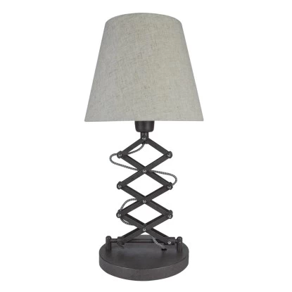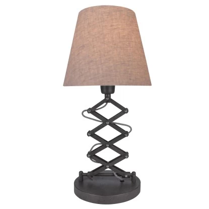Als praktischer Zusatz lassen sich Fuß und Schirm der Leuchte flexibel zwischen 37 cm und 71 cm einstellen. Der Schirm kann dabei zur rechten und linken Seite gekippt werden. Das Stromkabel ist mit einem Stoffüberzug versehen, der mit einem gezackten Muster in Schwarz und Weiß verziert ist, wodurch die Optik der Tischleuchte noch einmal aufgewertet wird.