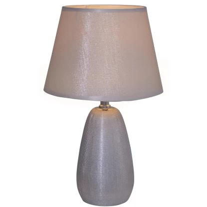 Lassen Sie sich von der Näve Tischleuchte Simply Ceramics aus Keramik 37 cm Silber begeistern. Der silberfarbene Keramikfuß dieses Wohnaccessoires macht es besonders attraktiv und robust. Die Leuchte mit schickem Silber glänzenden Lampenschirm und einer Höhe von 37cm passt ideal in Ihr Wohnzimmer oder in Ihren Flur. Der moderne Look dieses Wohnaccessoires ist der neue Hingucker in Ihrem Zuhause. Das Modell mit Schnurschalter wird ohne Leuchtmittel geliefert. Die Lampe weist die Schutzklasse IP20 auf.