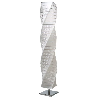 Die moderne Stehleuchte Twister hat einen stabilen Sockel aus gebürstetem Stahl und ist mit einem weißen Schirm aus reißfestem und verstärktem Papier versehen. Die Leuchte ist 3-flammig und hat einen praktischen Fußschalter.