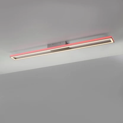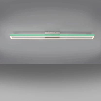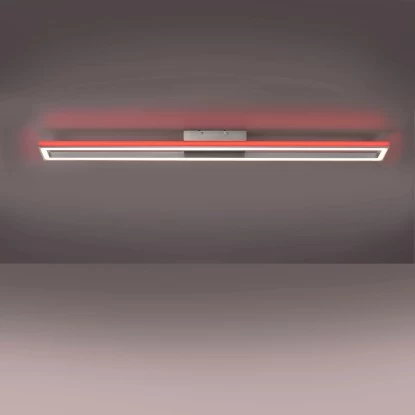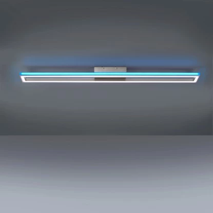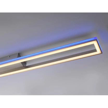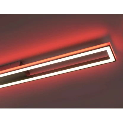 Die neue Leuchtenserie Helix mit der Paul Neuhaus Deckenleuchte Helix Aluminium RGB Sidelight CCT Downlight vereint zwei getrennt steuerbare LED-Lichtbänder in einem innovativen Aluminiumprofil. Seitlich zur indirekten Ausleuchtung erstrahlen die Helix Leuchten im RGB-Modus und im rechten Winkel abgewandt dazu im CCT-Modus vom Warmweiß bis Tageslichtweiß. Beide Lichtbänder sind über die Fernbedienung (inklusive) getrennt voneinander steuerbar und lassen sich stufenlos individuell einstellen. Dieser moderne Hingucker überzeugt an der Decke durch das schlanke Design mit einer Länge von 110,0cm, einer Breite von 10,0cm und einer Höhe von 6cm.