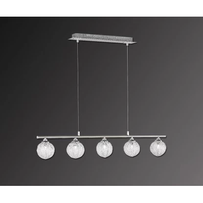 Die Pendelleuchte Womble aus Stahl ist eine optimale Esszimmerleuchte, denn Sie wird Ihre Wohnräume in ein angenehmes, wohnliches Licht tauchen. Sie überzeugt nicht nur durch Ihre klare, moderne Optik, sondern punktet auch durch Ihre ausgefallenen Kugeln aus Aluminiumdrahtgeflecht, die ein tolles Lichtspiel wieder geben. Die Leuchte wird inklusive fünf 28 Watt Halogenleuchtmittel geliefert. Jedes Leuchtmittel strahlt rund 370 Lumen aus und wirkt mit einer Farbtemperatur von 2.800 Kelvin angenehm warmweiß. Die Lichtleistung entspricht je ca. 40 Watt.