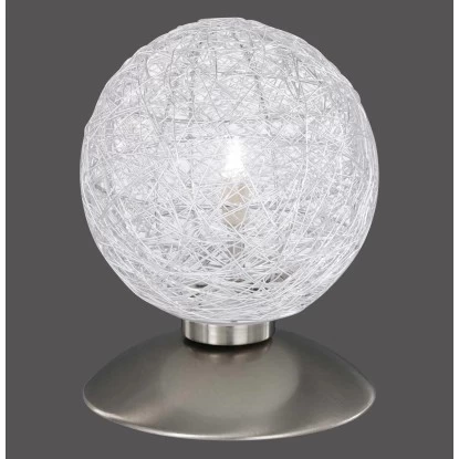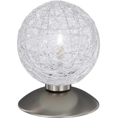 Kompromisslos schlicht und klar im Design so kann man die 1-flammige Tischleuchte Womble beschreiben. Die aus Stahl gefertigte Leuchte gibt durch die Kugel aus Aluminiumdrahtgeflecht ein schönes Lichtspiel wieder. Sie wird inklusive einem 28 Watt Halogen Leuchtmittel geliefert. Das Leuchtmittel strahl rund 370 Lumen aus und wirkt mit einer Farbtemperatur von 2800 Kelvin angenehm warmweiß. Ausgestattet mit einem Touchdimmer kann man sie durch Berührung schalten und dimmen. Die Lichtleistung beträgt max. ca. 40 Watt.