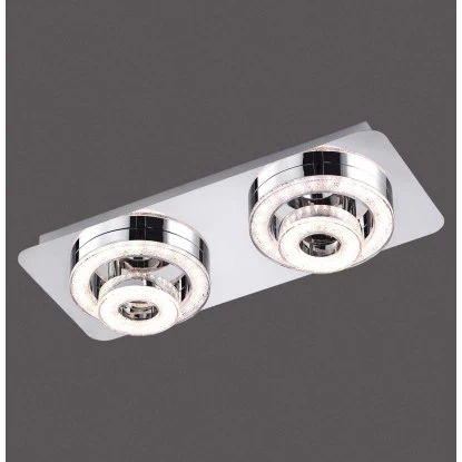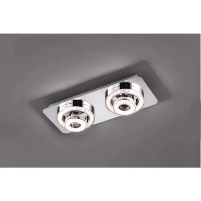 Die Deckenleuchte TIM überzeugt mit einem modernen Design. Die aus Stahl gefertigte Leuchte in der Farbe Chrom ist mit Acrylglaseinsätzen, die eine schöne Kristalloptik haben, bestückt. Sie ist mit zwei festverbauten 2,80 Watt LED-Leuchtmitteln und zwei festverbauten 3,10 Watt LED-Leuchtmitteln bestückt.