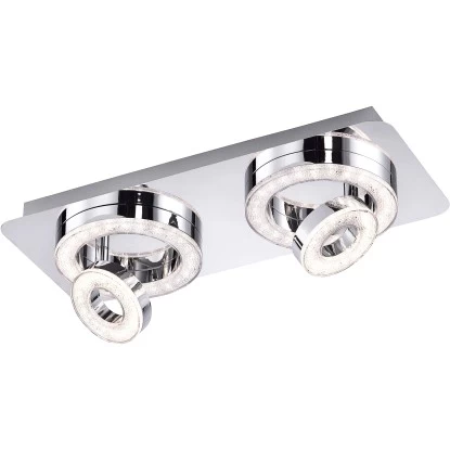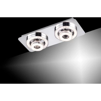Zusammen strahlen die Leuchtmittel rund 860 Lumen und wirken mit einer Farbtemperatur von 3000 Kelvin angenehm warmweiß. Die mittig, angeordneten kleinen Leuchtringe sind dreh- und schwenkbar. Die Deckenleuchte hat eine Länge von 400 mm, eine Breite von 17 cm und eine maximale Abhängung von 130 mm. Sie wird garantiert einen schönen Platz in Ihren Wohnräumen finden.