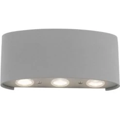 Die Paul Neuhaus LED-Wandleuchte Carlo Silber 6 x 0,80 W 3000 K / 17 cm x 4 cm überzeugt mit ihrer modernen und schlichten Optik. Die jeweils drei Leuchtmittel, die oben und unten an der halbrunden Leuchte angebracht wurden, geben tolle Lichtkegel wieder die sich dekorativ überschneiden und so ein schönes, dekoratives Licht wiedergeben. Die insgesamt sechs festverbauten, Warmweißen LED-Leuchtmittel strahlen zusammen rund 510 Lumen aus bei einer Gesamtleistung von gerade mal 6,50 Watt. Dank der verwendeten LED-Technik zeichnet sich die Leuchte als äußerst energiesparend aus und überzeugt dabei mit einer geringen Wärmeentwicklung sowie hohen Lebensdauer. Die Wandleuchte ist sowohl für den Innenbereich aber auch für den Außenbereich geeignet durch die Schutzart IP54. Setzen Sie einen eindrucksvollen Akzent mit der modernen LED Wandleuchte rund um Ihr Haus. Die Lampe hat eine Länge von 17,0 cm, eine Breite von 4,0 cm und eine Höhe von 8,0 cm. Der ideale Leuchtspaß für drinnen und draußen. Setzen Sie mit der Leuchte einen besonderen Hingucker an Ihre Hauswände ganz egal ob in Fluren oder im Eingangsbereich.