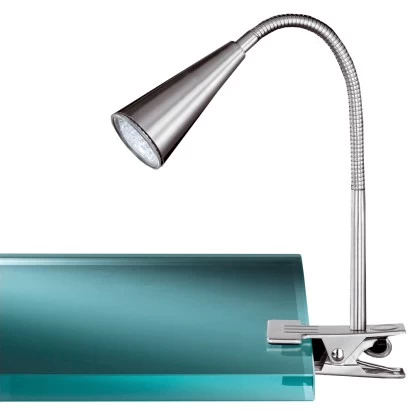 Der praktische Klemmspot Arcos in Nickel-matt lässt sich leicht z.B. an der Tischplatte befestigen. Mit dem verstellbaren Flexarm ermöglicht er eine optimale Ausleuchtung des gewünschten Bereiches.