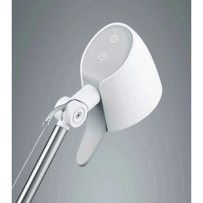 Auf dem Leuchtenkopf befinden sich zwei Touch-Punkte, über welche die Funktionen der Leuchte ganz bequem gesteuert werden können. Über das mehrfache Berühren der Touch-Punkte kann die Leuchte vier verschiedene Helligkeitsstufen und drei verschiedene Lichtfarben (3000/4000/5000 Kelvin) bedienen.